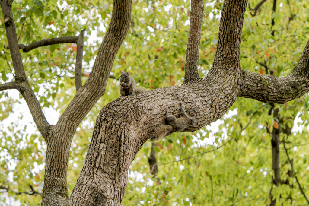 そんな公園内にの木々の上には、普通にリスがいる。そして、そのリスに餌を与えながら、やさしい目で見守っている人の姿がある。