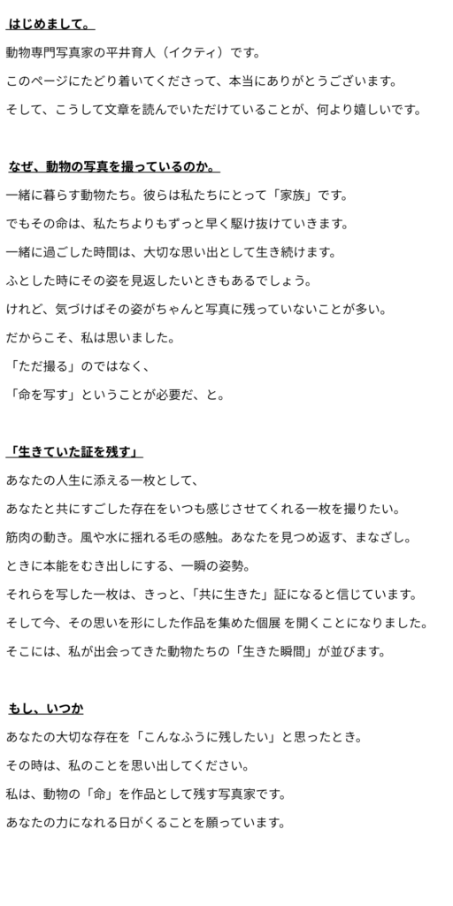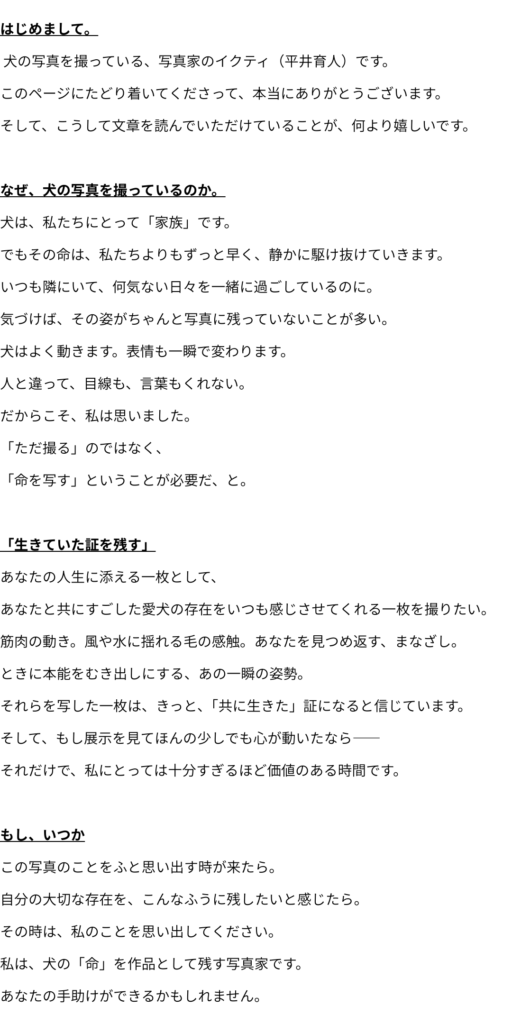 現在行っている撮影内容や私が写真に込めている想いを、こちらのページにまとめています。